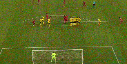 欧国联对阵瑞典,C罗上半场任意球破门。