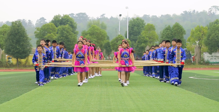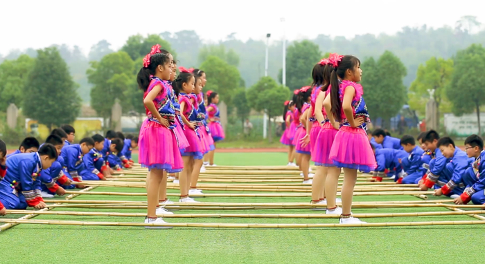 安徽省蚌埠高新实验学校带来的《竹竿操》。