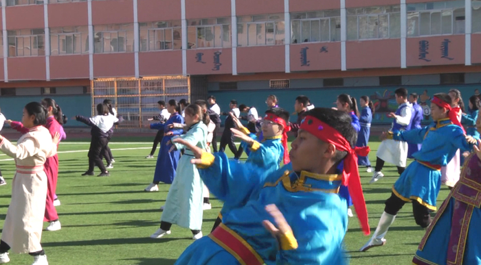 学校将蒙古舞融入课间操中,