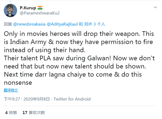 有人则说:只有电影里英雄才会放下武器。印军应该被允许开枪!