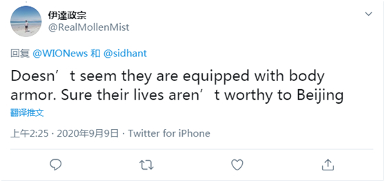 “他们似乎没有装备防弹衣。他们的生命肯定不值得北京的重视。”