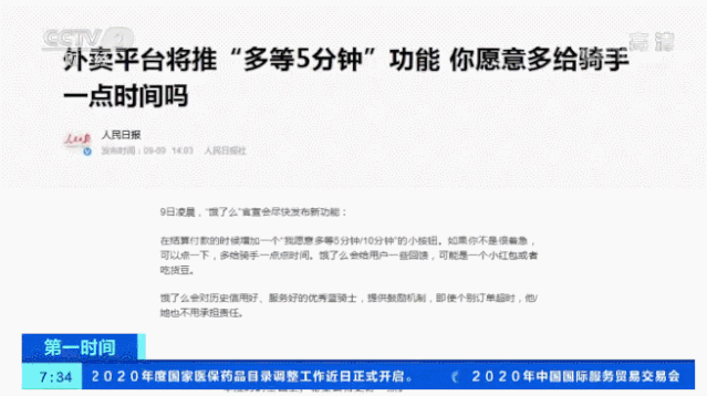 外卖平台“饿了么”发布声明称,会尽快发布新功能,在结算付款的时候,增加一个“我愿意多等5分钟/10分钟”的小按钮,供消费者选择。但是,针对这个办法,上海市消保委相关负责人就称,此办法在逻辑上是有问题的,外卖骑手的关系,是与企业的关系,外卖骑手相关的这些规则也是企业来定,即平台定,消费者在平台下单,商业行为也是针对平台产生,平台责任并不能转嫁给消费者。