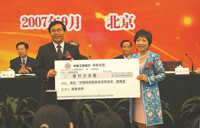 2007年,白春礼院士(现任中国科学院院长、党组书记)代表中科院接受朱李月华女士捐赠1000万元,设立“中国科学院朱李月华奖学、奖教金”。