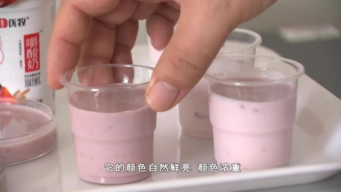 酸奶中的颜色,都来自天然的水果果粒,颜色自然鲜亮。