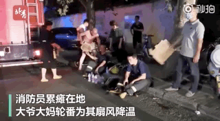 火场外消防员救人累瘫,街坊轮流扇风降温