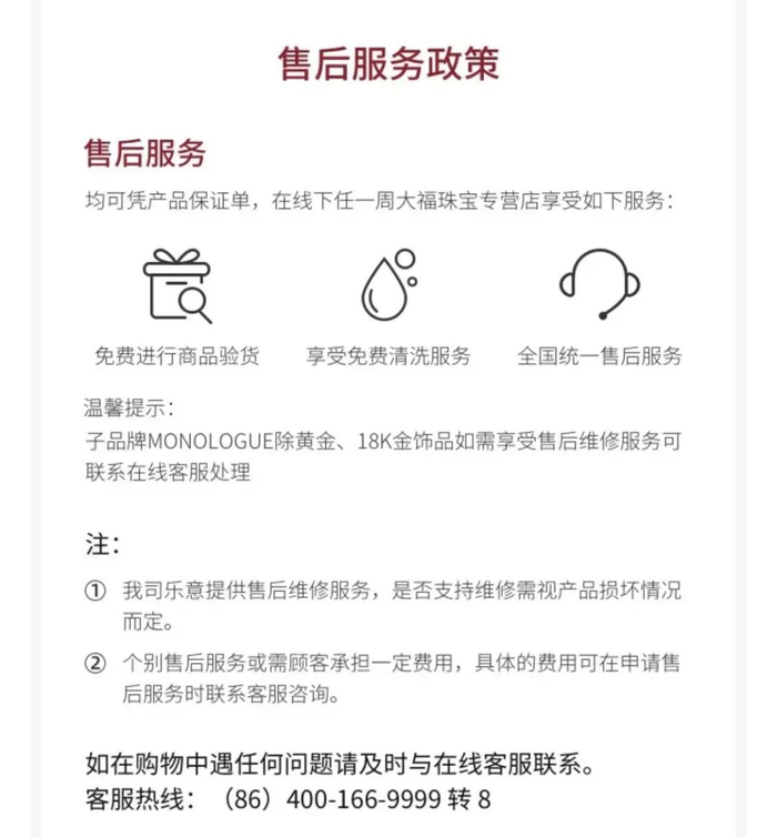 结果看到唯品会上周大福传承系列的选择很多,而且产品页面有介绍产品支持全国联保,后来打电话给周大福官方确认了下,唯品会确实是周大福的官方授权渠道。