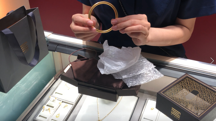 最后为了百分百放心,我还去了线下门店验证。专柜店员仔细鉴定了手镯、测了重量后还核实了保证单上的编号,确定了这款黄金手镯是正品!