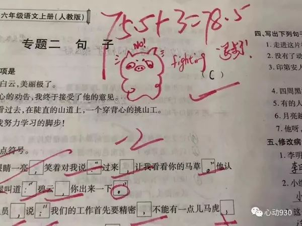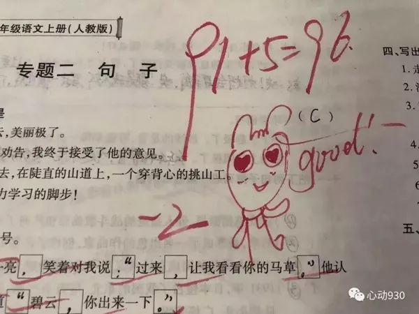 在给予分数之后特意在试卷上画了可爱的卡通画,