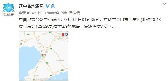 1、2020年9月9日辽宁营口发生的4次2.9级至2级不等地震活动属于1975年海城7.3级地震余震区域余震活动。