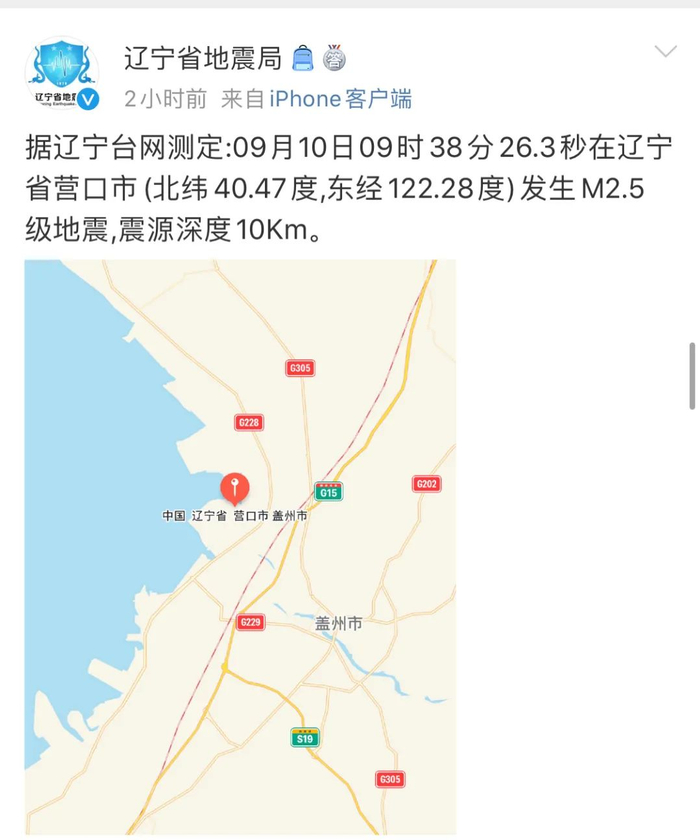 这一系列地震震中位于营口市东南和盖州市以北的区域,初步判断属于1975年2月4日辽宁海城市7.3级地震的余震活动。1975年海城强震之后,余震主要分布在海城-大石桥市-营口-盖州一线的区域。