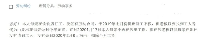 本人母亲在饮食店打工,未签劳动合同,于2019年7月提出辞工,但老板以要找到工人替代为由要求我母亲工作到2020年元宵节,直到2020年1月17日本人母亲不在该店工作。现在店老板以还没有请到工人,我母亲没有工作到2020年2月8日为由,扣除半月工资,我们该怎么维权?