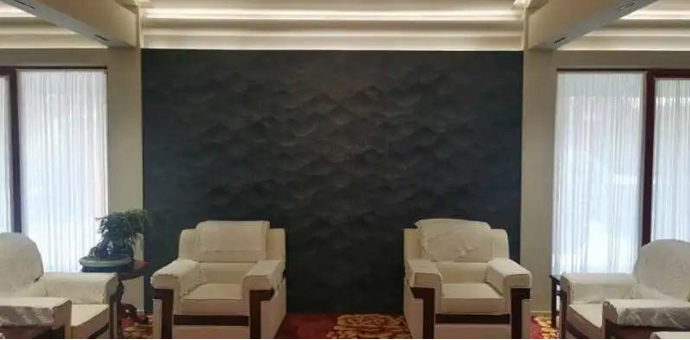 蔚蓝的青气好像波纹似的,在山峦间荡漾着。适合铺贴在任何一面背景墙,其他三面配合水纹样产品,形成“背山面水”的大气格局。