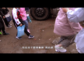 你看看孩子,哪怕有一个平整的路面,让孩子正常地走,每一个孩子都是在水里走,晴天都这个状况,现在孩子都跳的跳、跑的跑,整不好踩到哪个石头摔倒了怎么办。
