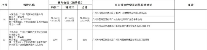 广州市机动车驾驶培训行业协会推荐的驾校清单及联系人、联系方式、收费标准及可安排接收学员训练场地地址等信息详见下图,各位学员债权人可自行联系。