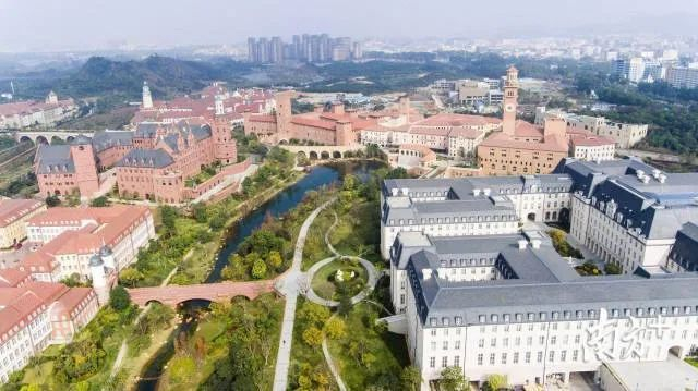 走在绿植环绕的河边,对面是极具欧洲风情的建筑,头顶是一座黑色铁桥,桥上时不时有小火车穿行而过……完全没有理由拒绝的嘛。