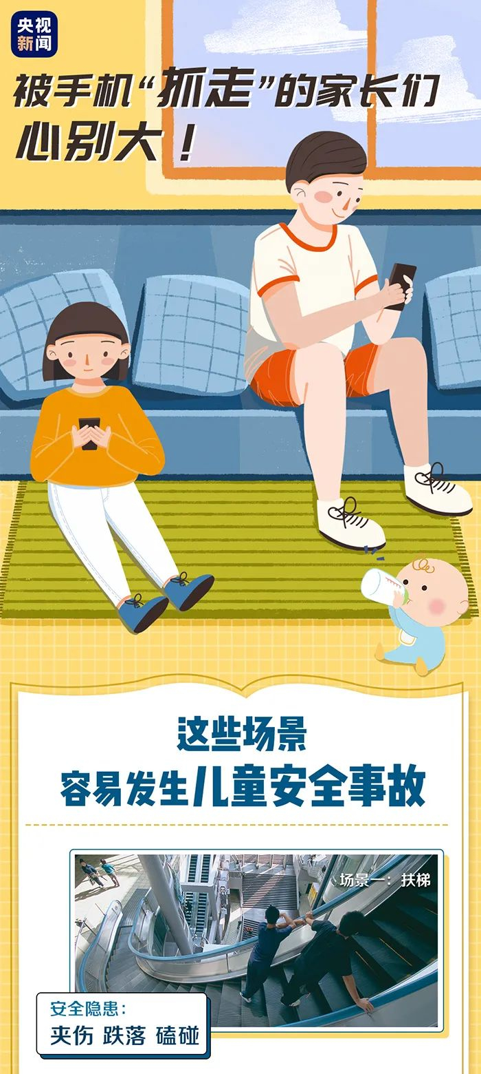 意外经常在不留神间悄然发生,那些被手机“抓走”的家长们要时刻紧绷安全这根弦!除了电动梯内,在公共场合,这些安全风险也要注意:
