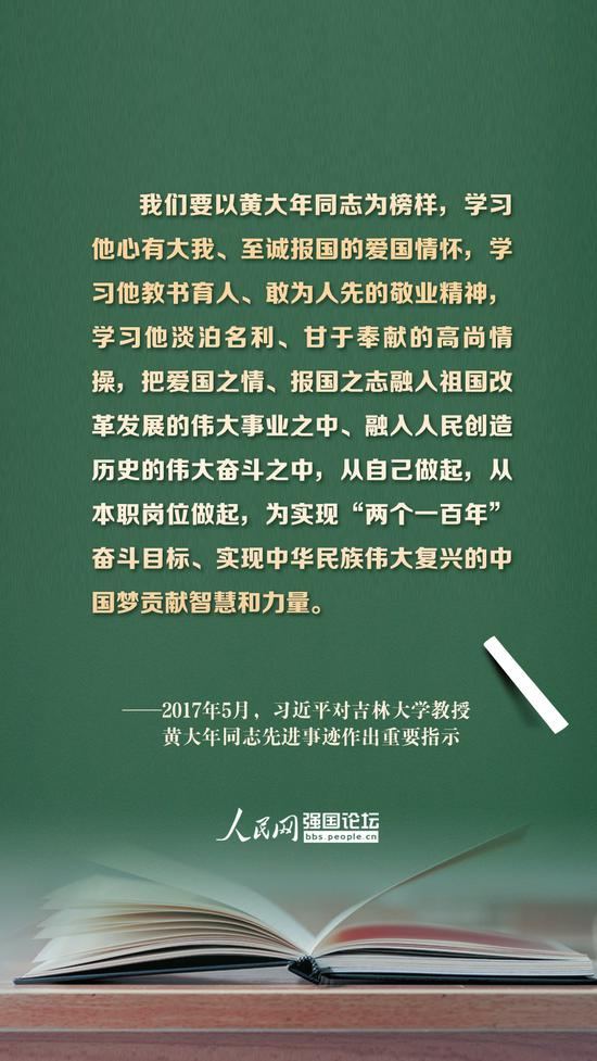 习近平提出,好老师要有“捧着一颗心来,不带半根草去”的奉献精神。对有突出贡献的老师,习近平都格外关注,并号召全社会学习他们教书育人扎根一线、传承文明无私奉献的精神。