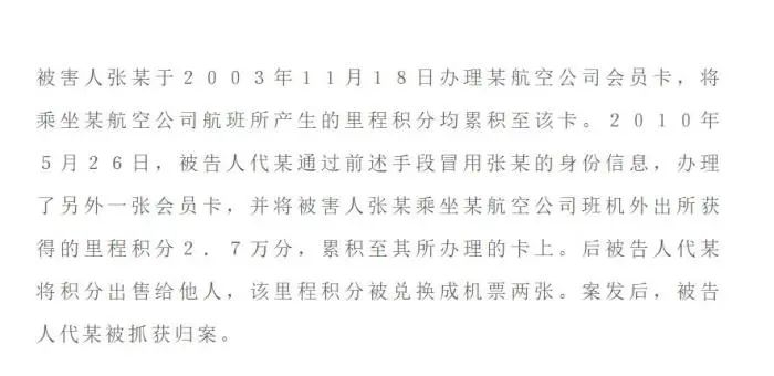 盗窃航空里程被判刑,其实早在九年前就有案例。据成都市中级人民法院公众号消息,2011年,被告人代某因盗窃他人航空里程积分,并将此出售获利,被成都市武侯区人民法院依法判处有期徒刑9个月,并处罚金1000元,同时将代某违法所得返还给被害人。