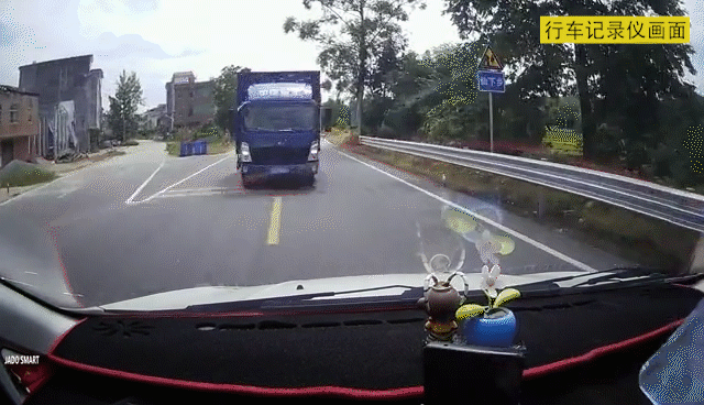 小车驾驶人陈某玩手机丝毫未察觉车辆已偏离路线进入对向车道对向车道内一辆蓝色货车只能紧急向左打方向躲避却为时已晚