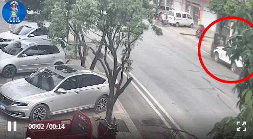 浙江舟山一名女子驾驶电动车时一直低着头专注地在看微信车子渐渐偏离轨迹也浑然不觉等她猛然发觉前方停着辆汽车时急忙手刹“脚刹”并用但已来不及还是剐蹭到了汽车车身