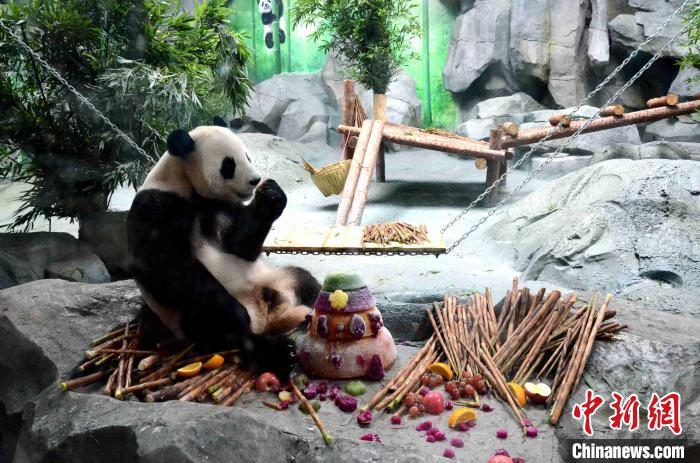 9月12日,来自成都大熊猫繁育研究基地的4只大熊猫,“小雅”“成对”“雅二”“思一”,正式落户位于山东德州的泉城欧乐堡动物王国。这4只大熊猫,最大的8岁,最小的5岁,均为雄性。当天,园区工作人员还为8岁的大熊猫“成对”举办了在“新家”的第一次生日会。