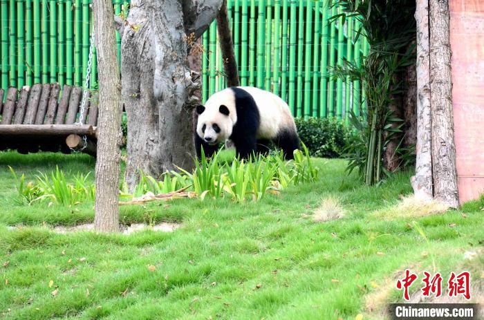 9月12日,大熊猫“小雅”正在室外活动。 孙婷婷 摄