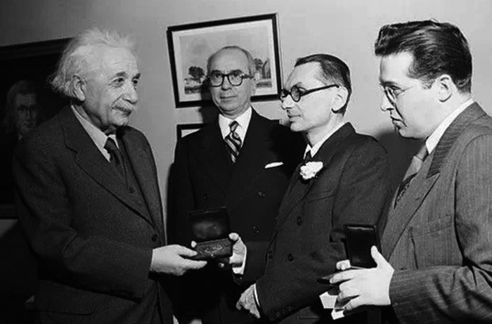爱因斯坦亲自授予哥德尔第一届爱因斯坦勋章