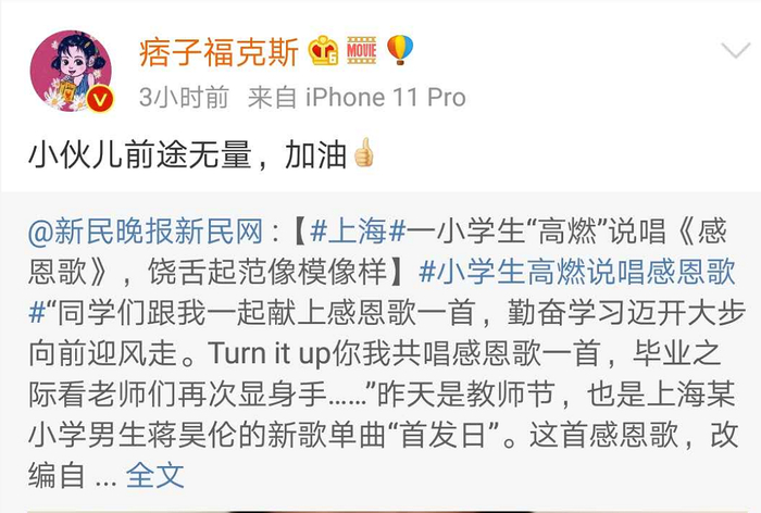 原标题:上海小学生“高燃”说唱《感恩歌》,饶舌起范像模像样,连原唱都点赞