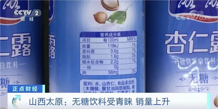 在山西太原市的一家超市里,标注着“无糖”字样的饮品被摆在货架显眼位置。除了常见的无糖可乐,还有一些品牌的杏仁露、茶饮、酸梅汤等都推出了无糖款产品。