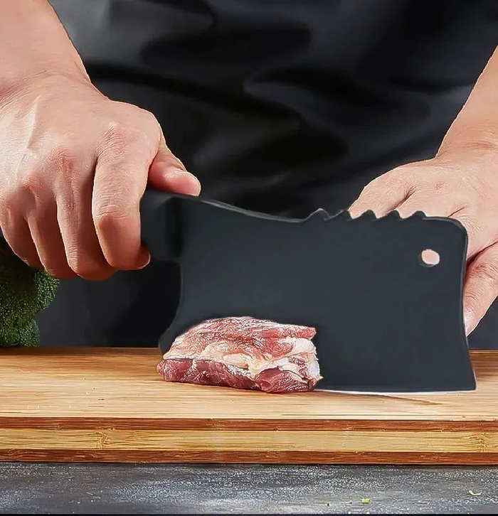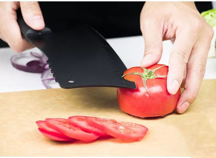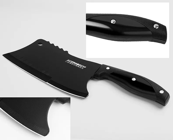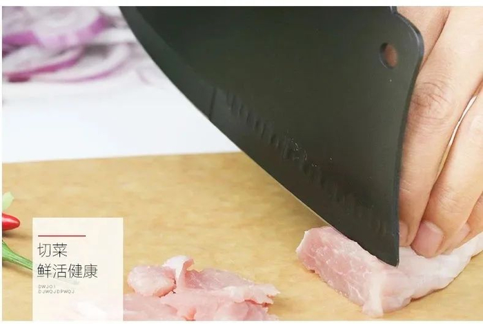 看多了粗狂的白晃晃的菜刀,它黑色设计更加精致大气,会让你有种挂起来舍不得用的感觉。