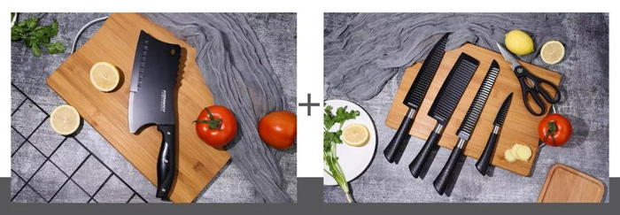 品质稍微好的菜刀,一把就要上百元,而这款砍切一体刀+6件套,才88元 !