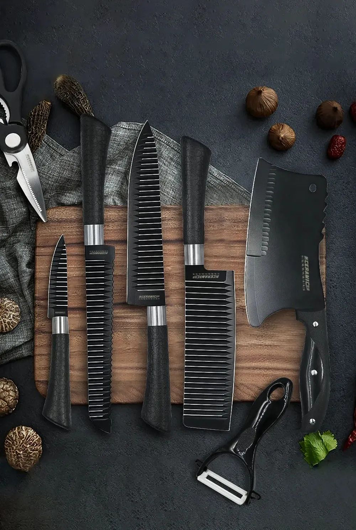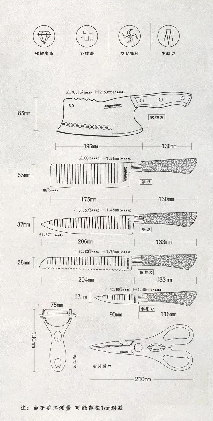 而今天为大家介绍的阳江锐瓷品牌出产的七件套刀具组合,就将这些特质完美地融为一体。