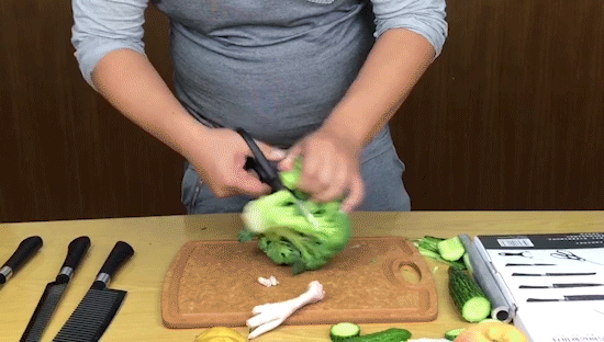 厨用剪刀,这个特别实用,像是花椰菜这种难以料理的食材,一把剪刀搞定,宝宝的辅食(面条、蔬菜、肉)也可以剪碎。
