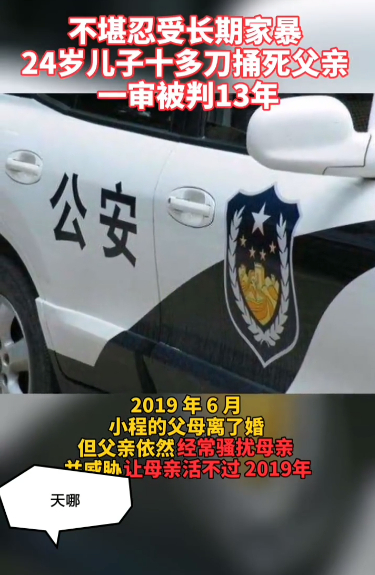 父亲长期对家庭不负责任,且对家庭成员有家暴行为,导致其与家庭成员之间的矛盾日益激化。24岁的儿子小程不堪忍受,持匕首连捅父亲十多刀,致其死亡。近日,江苏宿迁中院审理了此案,一审判处小程有期徒刑13年。