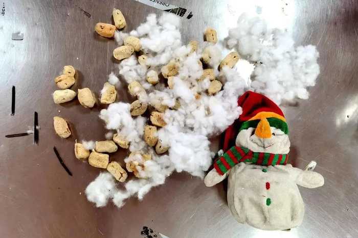 藏在破旧毛绒玩具内