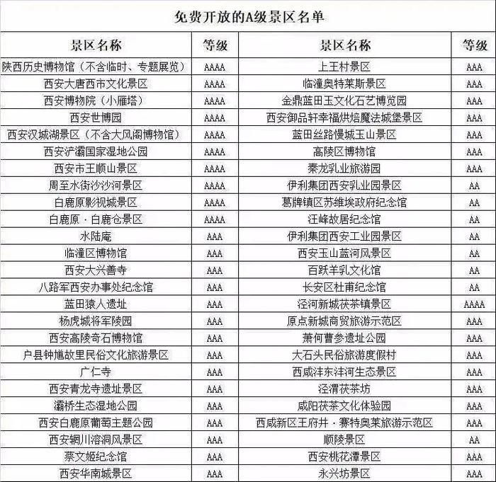 西安:53家A级景区免门票