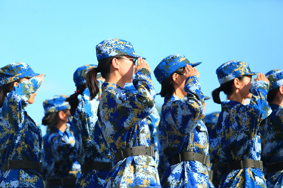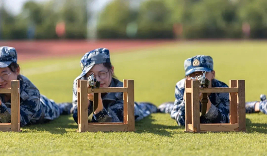 浙江中医药大学的女生们进行射击训练。浙江中医药大学
