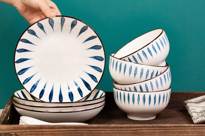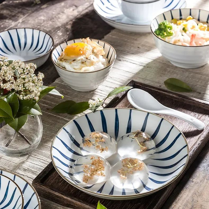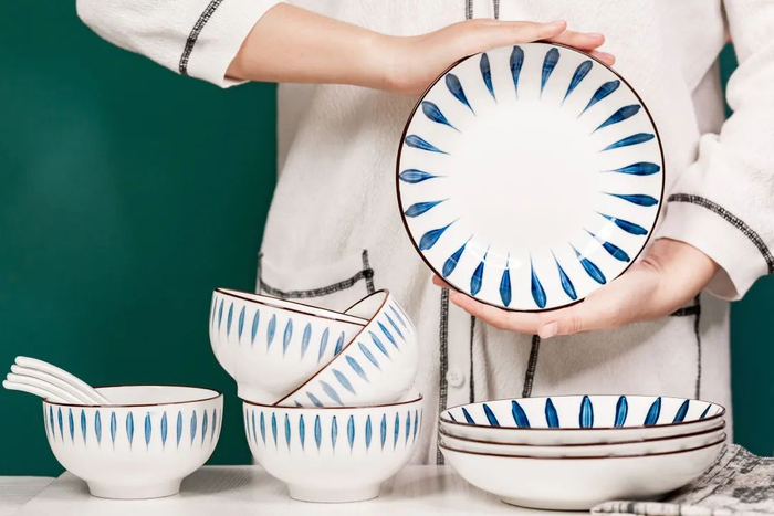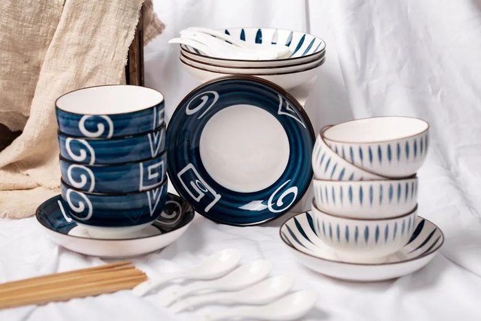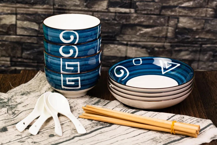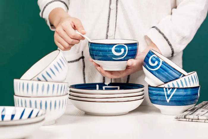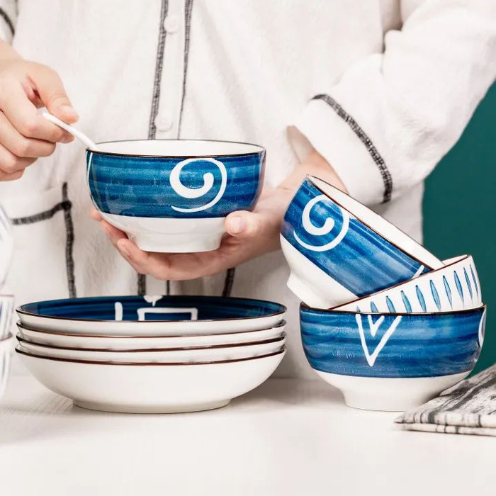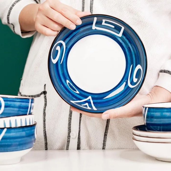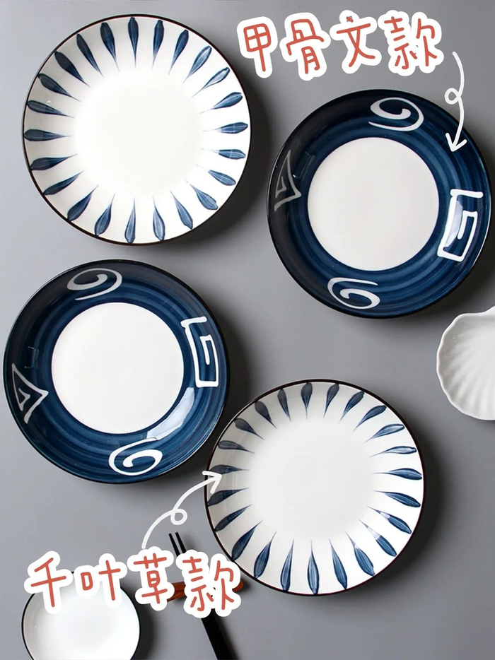 这套日式和风餐具,采用当下特别流行的“釉下彩工艺”高温烧制而成,每一道痕迹,都赋予了碗盘鲜明的个性与风采。