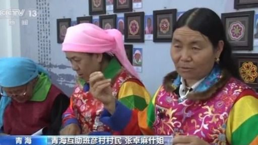 青海互助班彦村村民 张卓麻什姐:以前娃娃们没有上过幼儿园,现在我们的娃娃们都上过。共产党的政策真的太好了,我们生活发展发生变化很大的。我们这些绣娘们是很幸福,你看一天坐在盘绣园里面、有笑有说的这么开心。