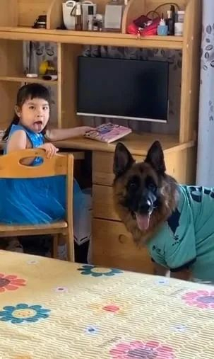 这只狗狗曾帮偷偷看电视的小女孩放哨