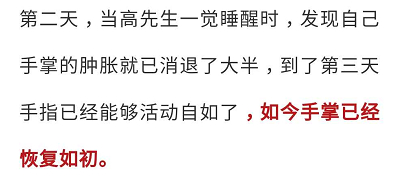 “医生千万要救救我的手啊,你们有经验的。”高先生说当天已经去卫生院消毒处理,在后面的几天只是觉得隐隐的疼痛,随后小指和无名指的连接处开始出现红肿。