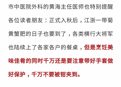 为了吃螃蟹,男子手烂了!每年这季节高发,医生:别再自作聪明...