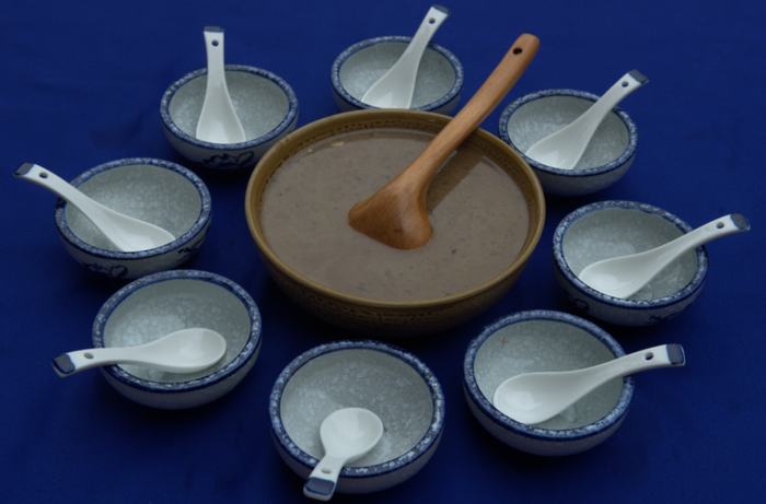 花米饭是布依族在“三月三”祭祖必须上桌的供品,祈求避灾免祸,来年丰衣足食。花米饭的五彩斑斓代表了布依族对美好生活的追求。植物浸泡染色,表达了布依族崇尚自然。