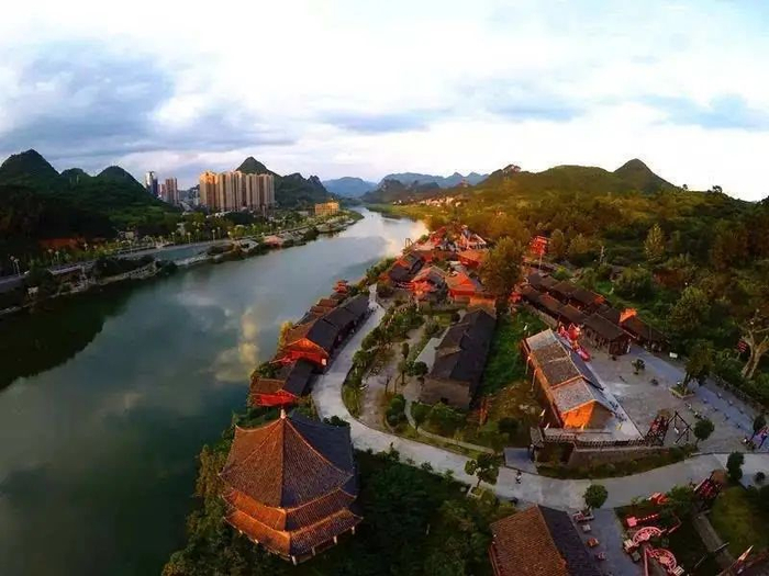 荔波古镇民族文化旅游综合体再现清朝乾隆时期荔波石城历史,总投资约30亿,现已建成约为25万平方米,为国家AAA级景区。