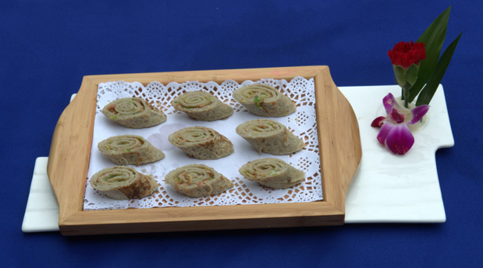 因制作的成品跟做饭时蒸出的锅巴过程相似,故名曰“锅巴粉”,制作过程为将大米、绿豆、青菜,葱,蒜叶萝卜叶等做成的浆在锅里烙成饼,然后冷却卷成卷,卷可以切丝。“锅巴粉”易熟,口感瓷实,含有大米、青菜、绿豆,葱,蒜叶萝卜叶等特有的清香味,营养健康。