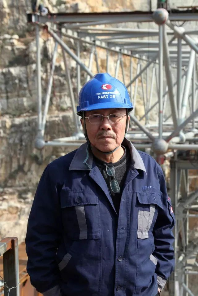 南仁东在施工现场与工程技术人员讨论 供图:FAST工程副经理、工程办公室主任张蜀新