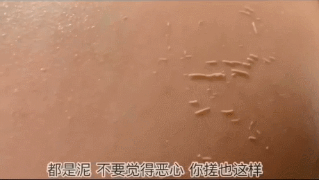 不需要用力,轻轻在皮肤上画圈打转,就能搓下泥来~