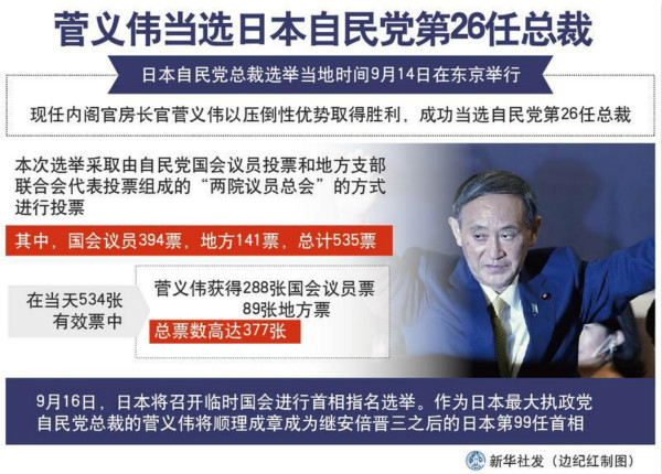 图说:菅义伟当选日本自民党第26任总裁 新华社