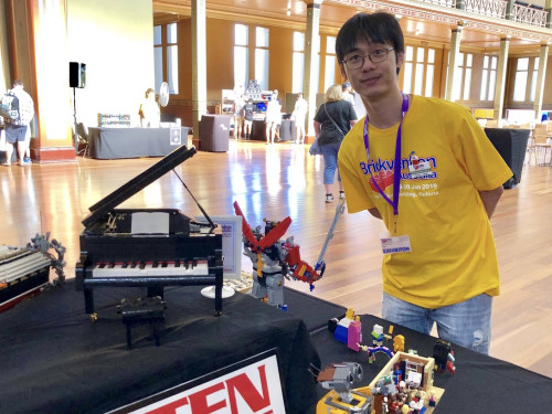 图为乐高钢琴设计师陈道亮(Donny Chen)参加2019年Brickman Awesome墨尔本乐高展。(受访者供图)