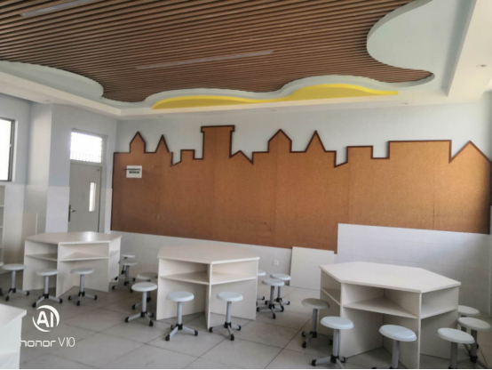 人性化体现在哪?看看学校的墙壁就能感受到。墙面阳角设计了阳角条,石材、外墙等阳角还增加了软性防碰条,只为了精心呵护,不让小朋友受伤。在教室里,除了常规课桌椅外,还加装了书包柜、储物柜,方便学生和老师收纳物品。
